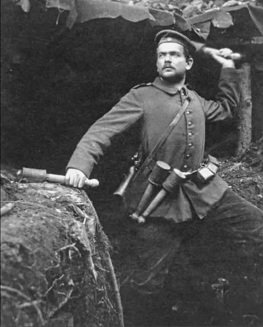 A German Grenadier with stick grenades – Circa 1915