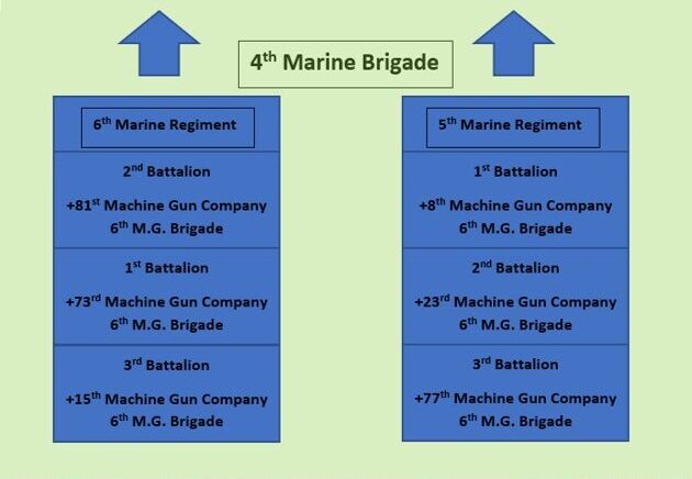 As the 4th Marine Regiment moved into place, a conference was held at the French XXI Corps headquarters to discuss a plan of attack for the 2nd Division. At 0945 hours (9:45 A.M.), the 4th Marine Brigade was ordered to attack in a column of battalions which would be made of columns of regiments. The columns would consist of one regiment as the assault element, one regiment as support, and a regiment to serve as reserve. The orders reached the 6th Marine Regiment, and the 2nd Battalion had been chosen to be the assault battalion, Private Glucksman’s 78th [E] Company was chosen to be the assault regiment.